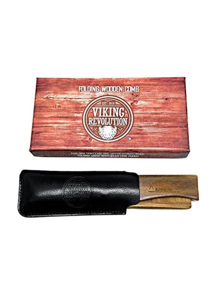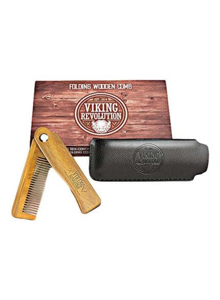 فايكنج رفلوشن مشط لحية قابل للطي مع حقيبة حمل بني