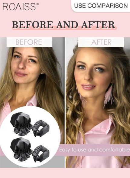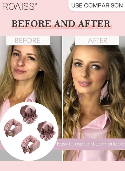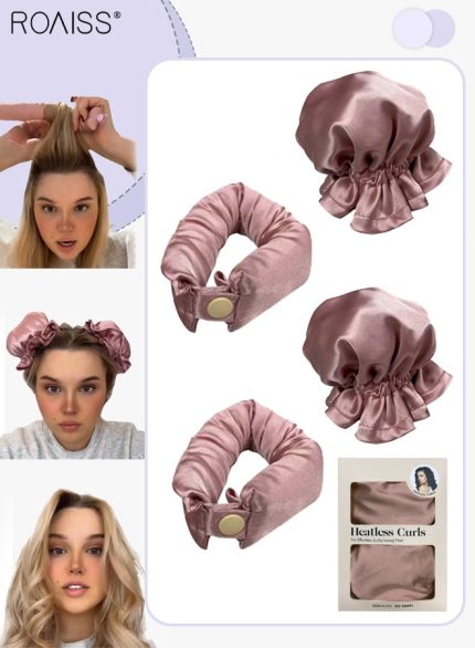 رويس مجموعة مكونة من 4 قطع من مجعد الشعر الخالي من الحرارة من الساتان، بكرات شعر لتجعيد الشعر بدون حرارة مع أغطية للشعر، وحزام رأس ناعم لتجعيد الشعر الطويل، ومجموعة للنوم طوال الليل (وردي)