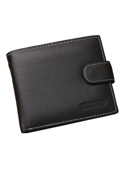 جينباولاي محفظة جلد ثنائية الطي أسود