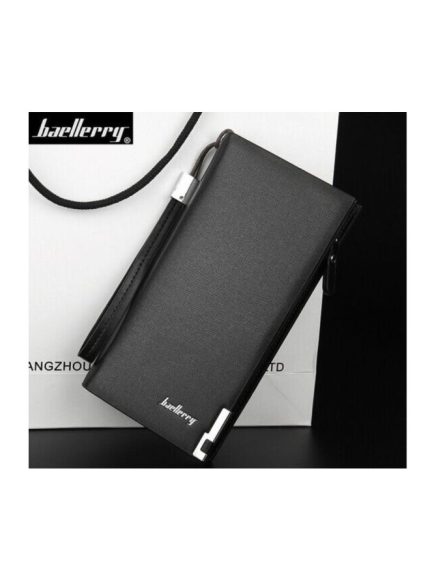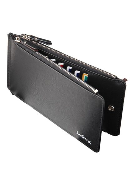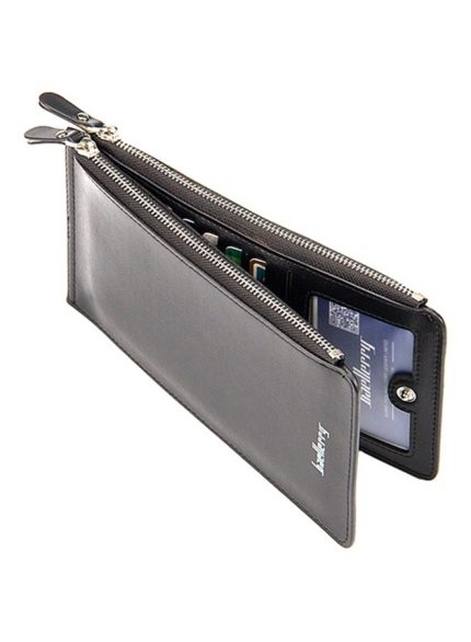 بايلليري محفظة ثلاثية الطي بسحّاب للرجال أسود