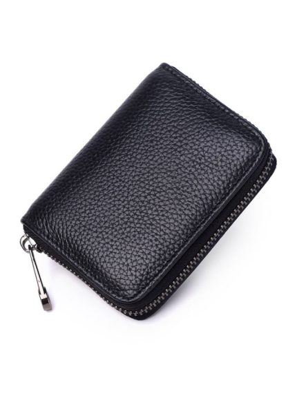 بيوينتي حامل بطاقات مصنوع من جلد العجل أسود