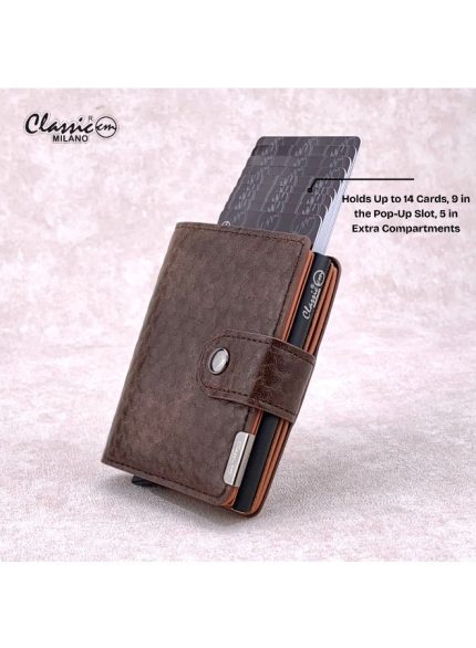 كلاسيك ميلانو محفظة كلاسيك ميلانو بحماية RFID للرجال والنساء – حامل بطاقات أوتوماتيكي بتصميم بوب أب – محفظة بطاقات آمنة ومدمجة للرجال – محفظة أنيقة للرجال والنساء