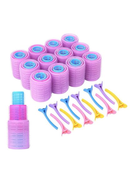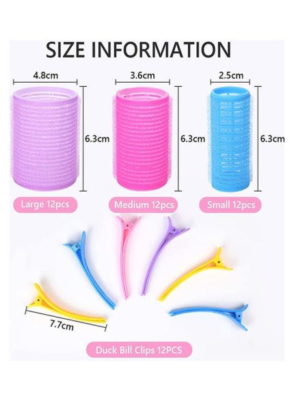مجموعة بكرات لف شعر ذاتية الإغلاق ومشابك لتثبيت الشعر من 48 قطعة متعدد الألوان