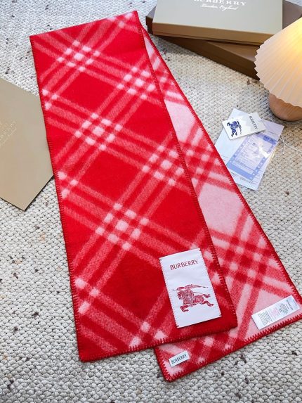 Check Wool Scarf Crayon red