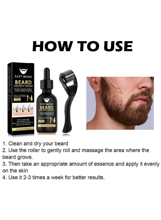 إيست مون مصل نمو اللحية هايبر ديرما رولر – للرجال زيت إكليل الجبل محسن نمو الشارب مصل العناية بتساقط الشعر مع رول اللحية 60 مل