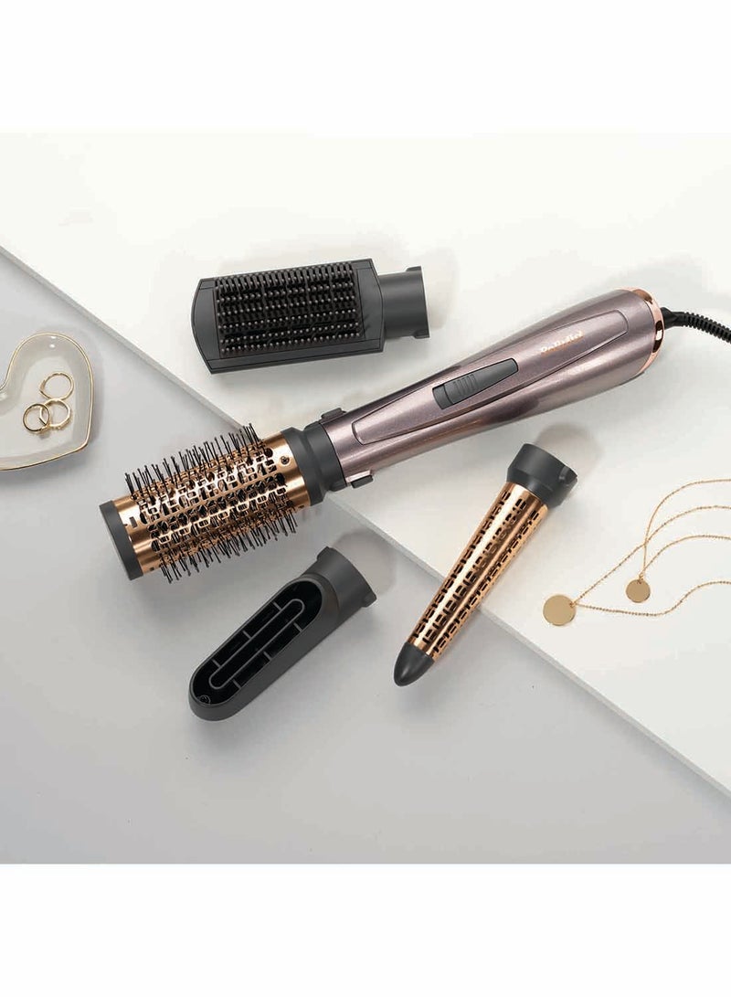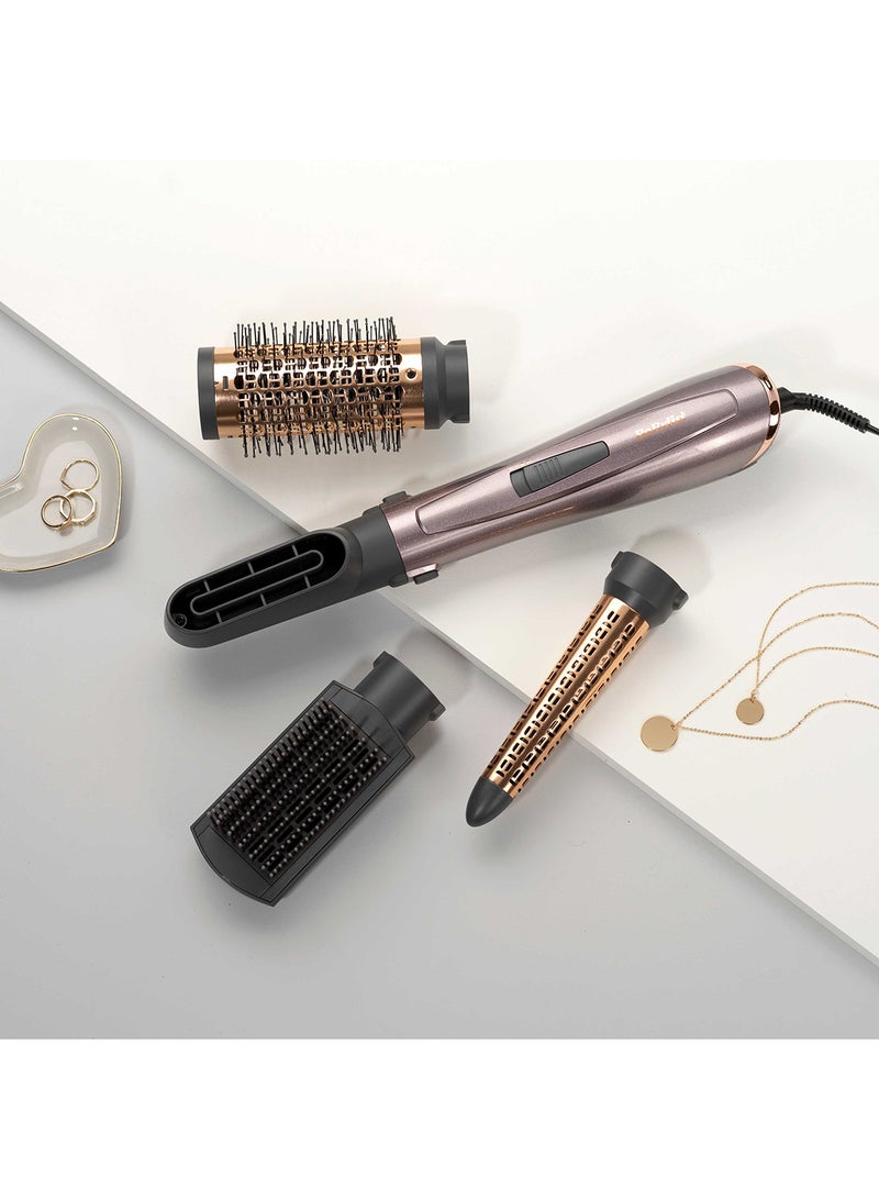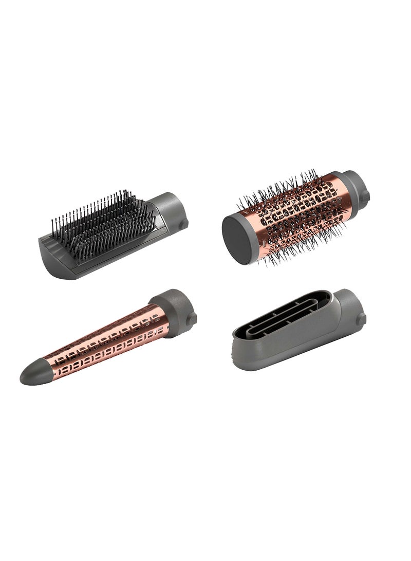 - ملحقات متعددة الوظائف: يتضمن هذا الطقم فرشاة ملساء، ملحق تجعيد مخروطى، ملحق إضافة الحجم، وملحق تجفيف دقيق. سواء كنتِ ترغبين في شعر أملس ومستقيم أو تجعيدات ناعمة ومرنة، فإن هذا الجهاز يلبي جميع احتياجاتك.