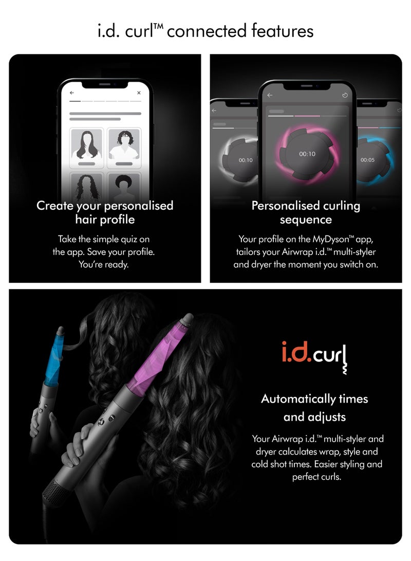- ID curl Programs your perfect curls every time One-touch i.d. curl™ technology. Get close to the roots for defined curls throughout your hair, and volumized, bouncy styles. airwrap i.d. Perfect connection Our first Bluetooth® enabled Airwrap™ multi-styler and dryer