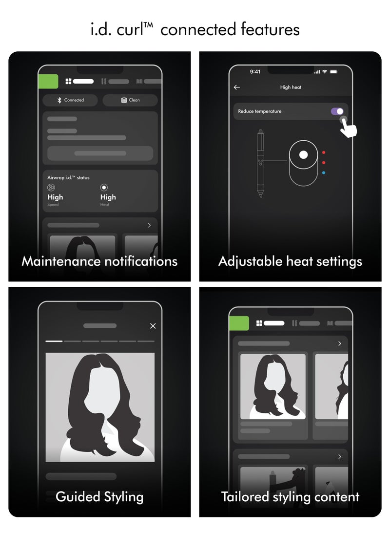 - Use the app to reduce the heat. And i.d. curl™ automatically adjusts. Live settings The MyDyson™ app shows your current settings when you're Bluetooth® connected. Maintenance notifications Keep your Airwrap i.d
