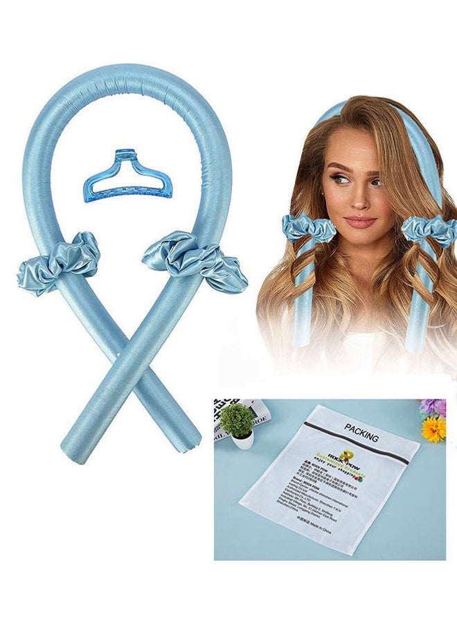 روك بو طقم أدوات بتصميم ربطات رأس لتجعيد الشعر دون حرارة مخصصة للشعر الطويل أزرق