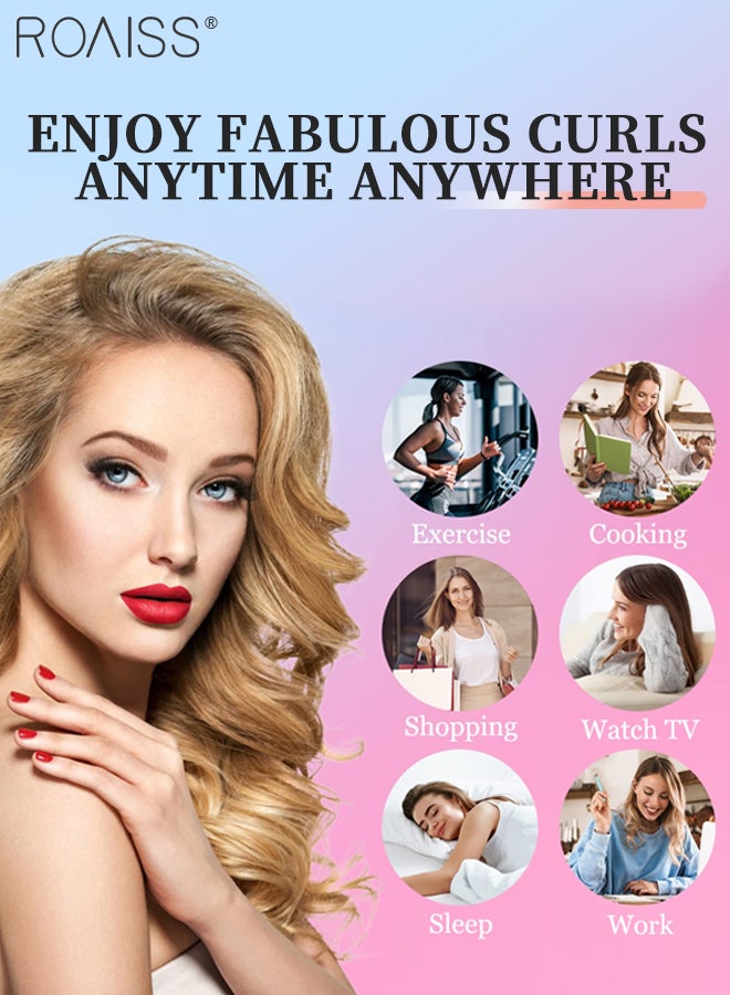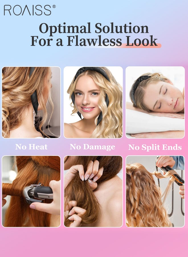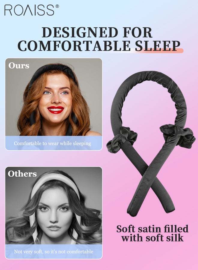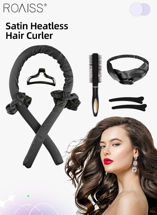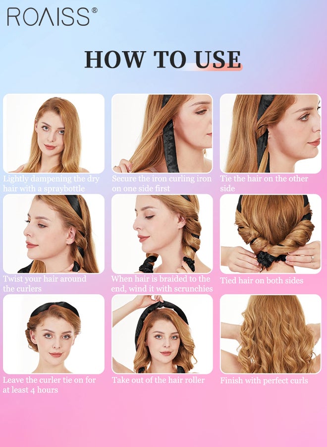رويس أداة تجعيد الشعر بدون حرارة من الساتان، حلقة تجعيد الشعر بدون حرارة مكونة من 8 قطع مع أشرطة للشعر ومشابك وحزام غسيل الوجه ومشط وأدوات تجعيد الشعر للنساء ذوات الشعر الطويل، مجموعة أدوات تصفيف الشعر