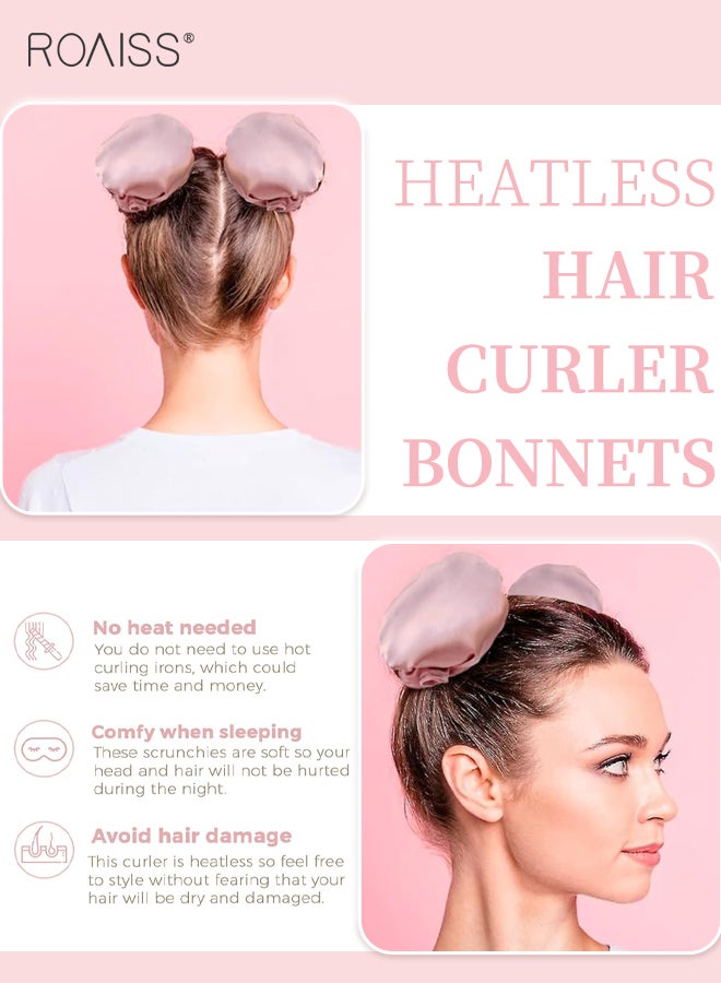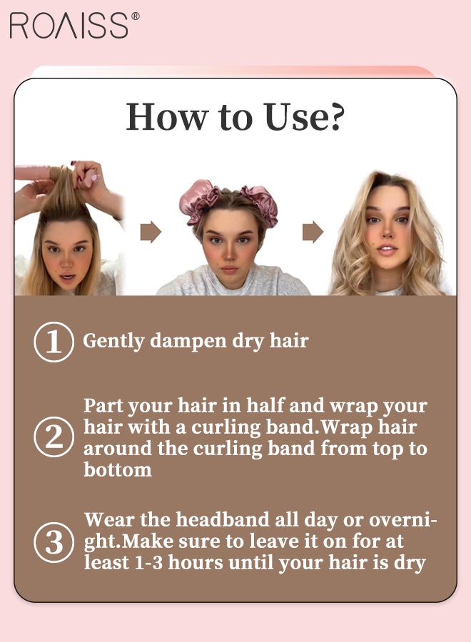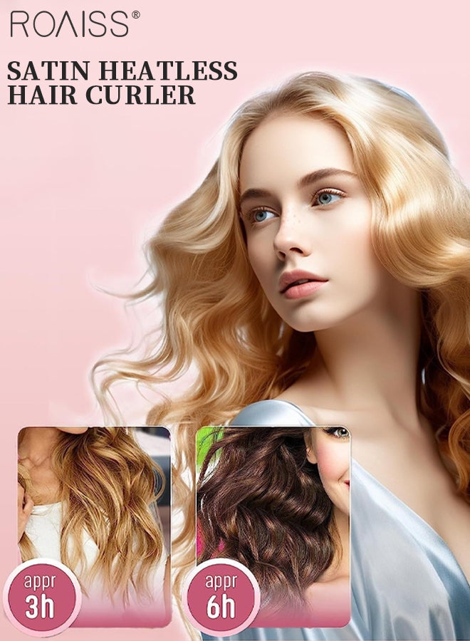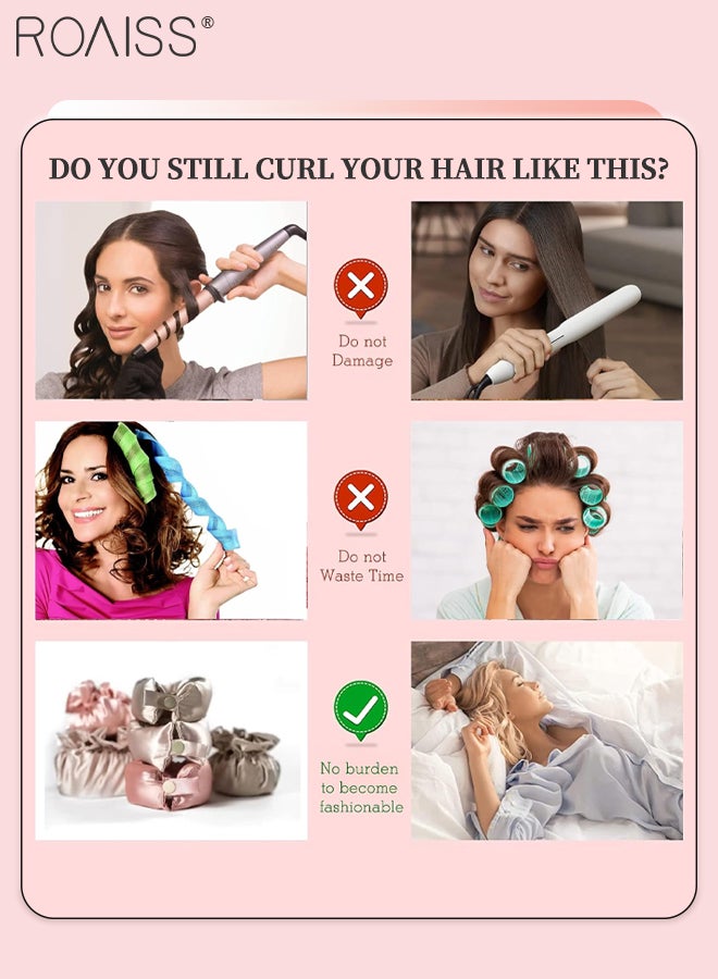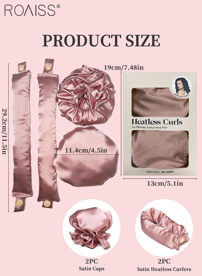 رويس مجموعة مكونة من 4 قطع من مجعد الشعر الخالي من الحرارة من الساتان، بكرات شعر لتجعيد الشعر بدون حرارة مع أغطية للشعر، وحزام رأس ناعم لتجعيد الشعر الطويل، ومجموعة للنوم طوال الليل (وردي)