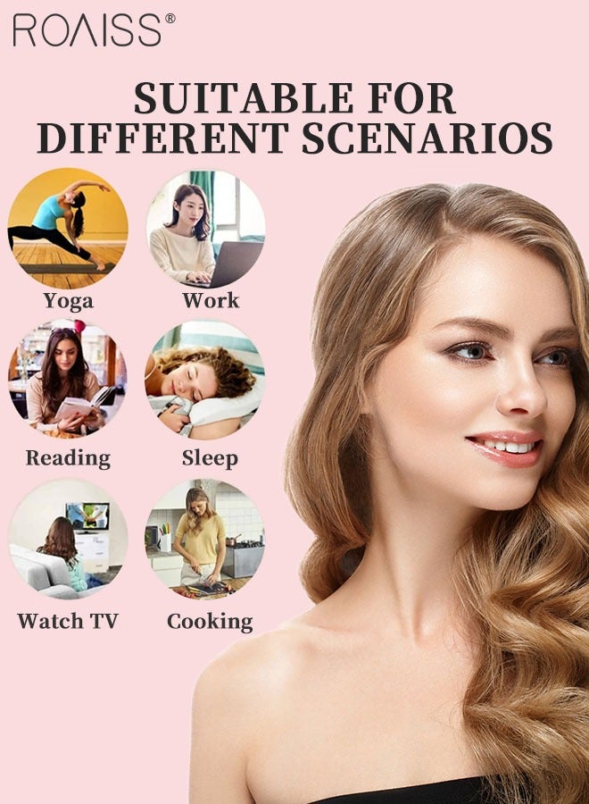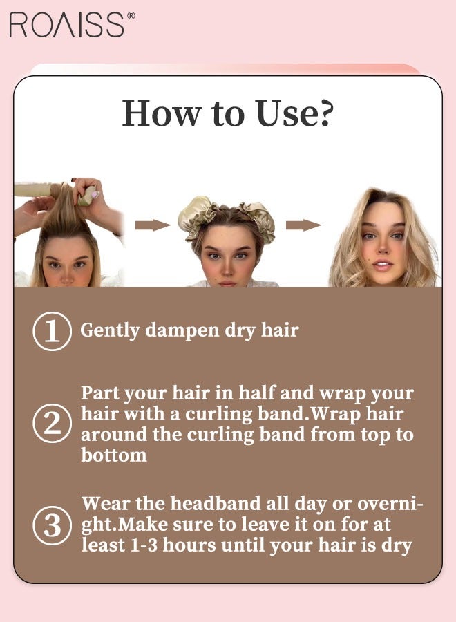 رويس مجموعة مكونة من 4 قطع من مجعد الشعر الخالي من الحرارة من الساتان، بكرات شعر لتجعيد الشعر بدون حرارة مع أغطية للشعر، وحزام رأس ناعم لتجعيد الشعر الطويل، ومجموعة للنوم طوال الليل (وردي)