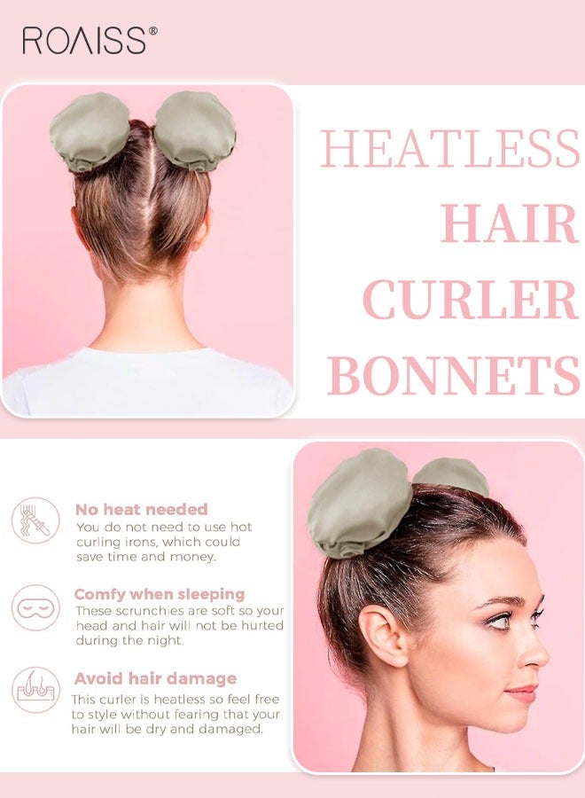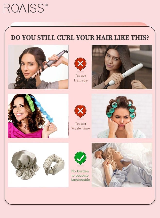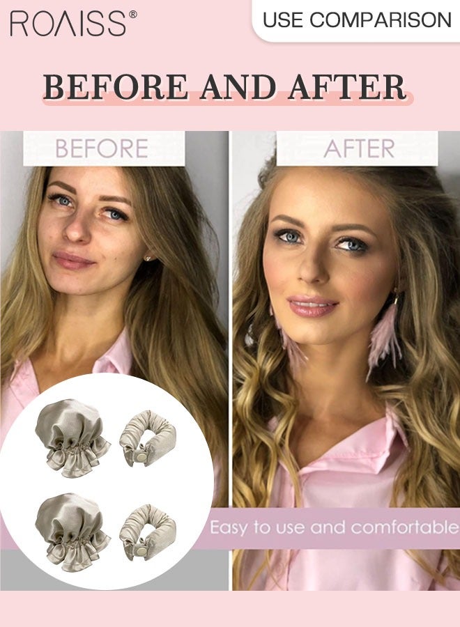 رويس مجموعة مكونة من 4 قطع من مجعد الشعر الخالي من الحرارة من الساتان، بكرات شعر لتجعيد الشعر بدون حرارة مع أغطية للشعر، وحزام رأس ناعم لتجعيد الشعر الطويل، ومجموعة للنوم طوال الليل (بيج)