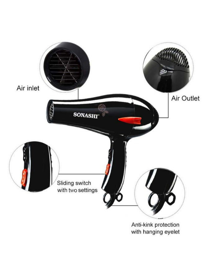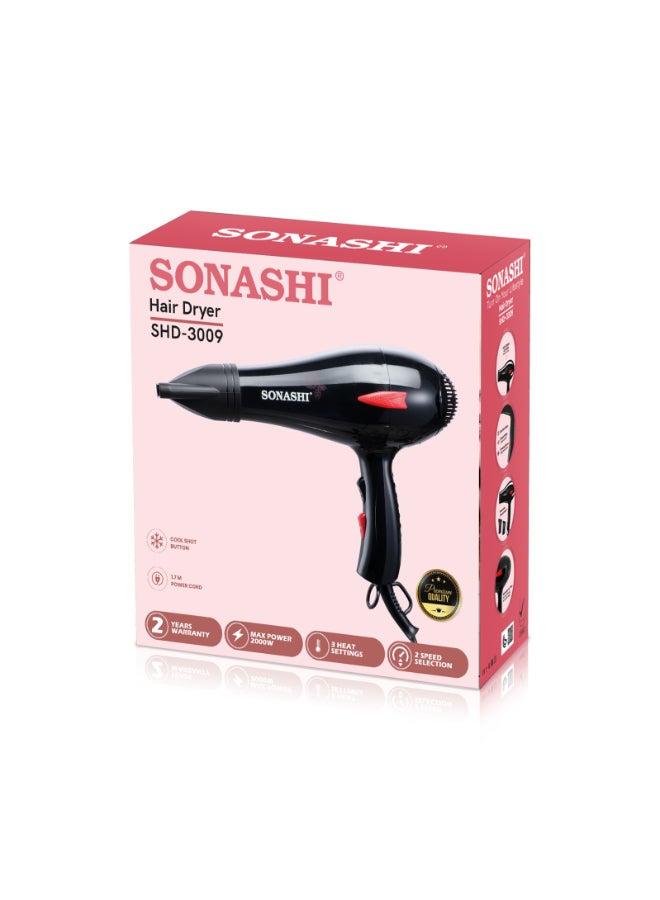 سوناشي مجفف شعر احترافي بقوة 2000 وات SHD-3009 أسود أسود