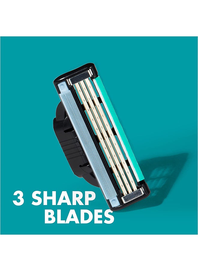 Gillette Mach3 men’s razor blade refills deliver a close shave, without all the redness, while feeling better after the 10th shave than a new disposable does on the first*. Each razor blade refill features 3 DuraComfort blades for long-lasting comfort. Gel strip glides to help protect your skin from redness, while an Advanced Skin Guard helps stretch your skin in order to prepare your hair to be cut. These Mach3 blade refills can be used with any Mach3 razor. * vs Gillette Blue II