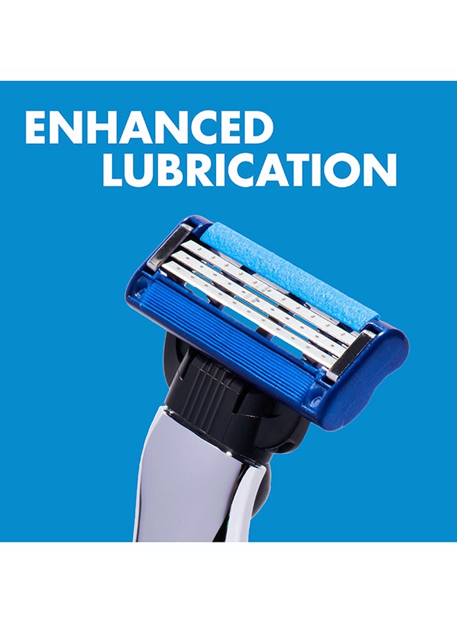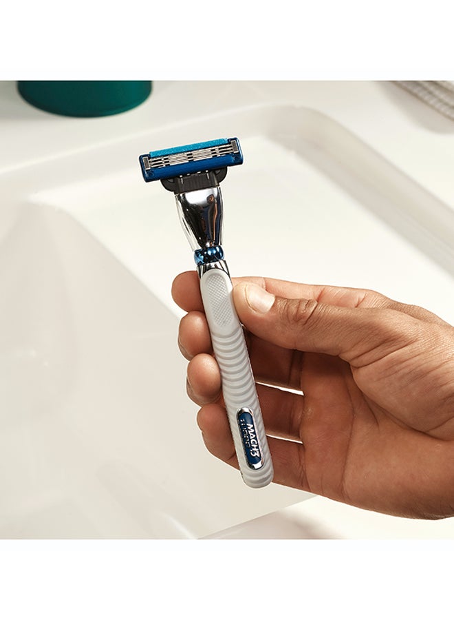 شفرة حلاقة ماش 3 تربو ثلاثية الأبعاد بمقبض مع شفرتين إضافيتين فضي / أزرق