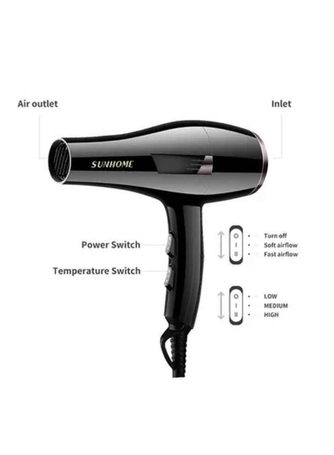 صن هوم طقم مجفف شعر احترافي مكون من 4 قطع، 2000 وات، أسود أسود