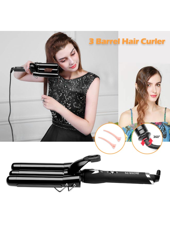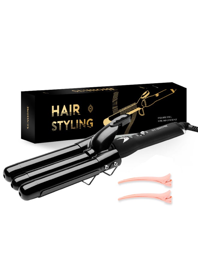 صن هوم مكواة تجعيد الشعر الكهربائية 3 أسطوانات، 25 ملم، أسود 380 ملم أسود 380مم