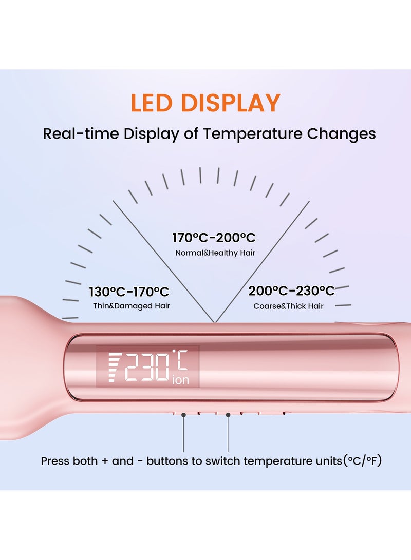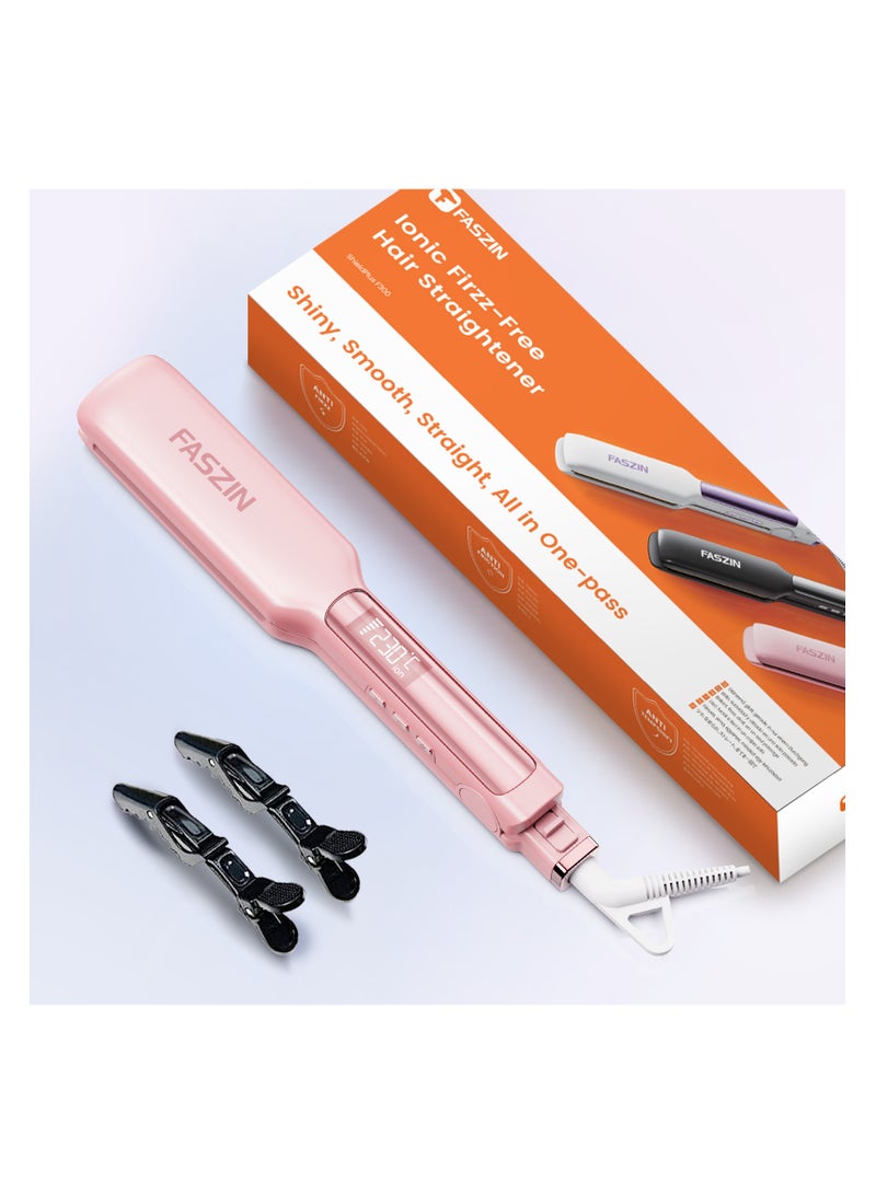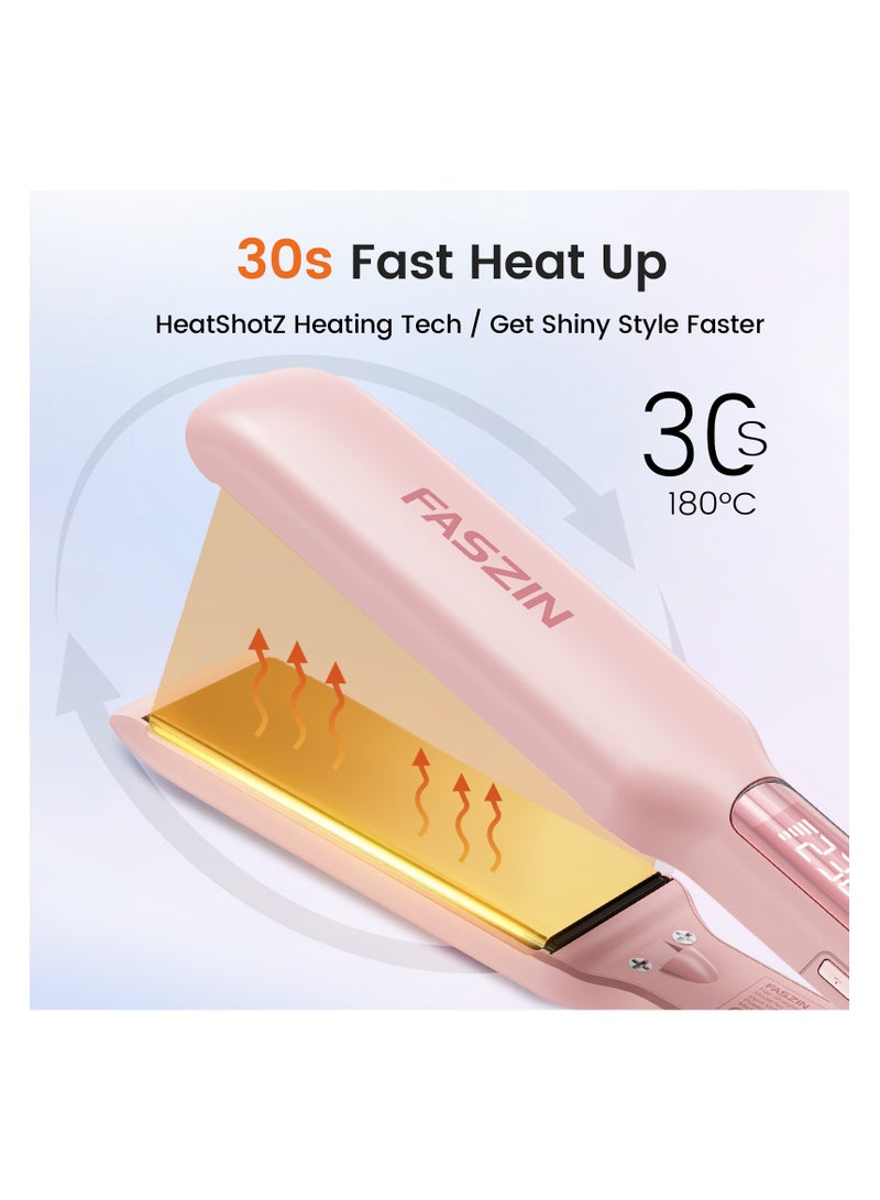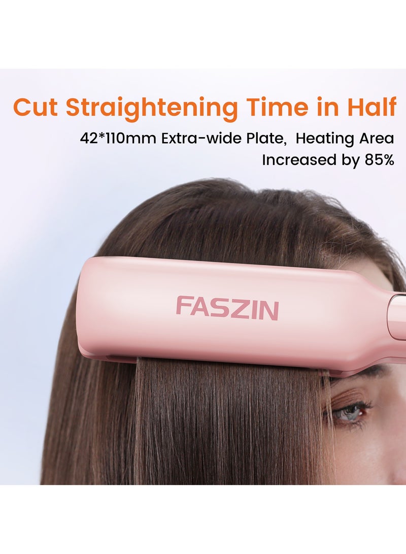 فازين فرد الشعر الاحترافية بلوحة عريضة 42 مم أيون سالب من التيتانيوم تسخين سريع لمدة 30 ثانية، شاشة LED لدرجة الحرارة في الوقت الحقيقي جهد عريض 10 مستويات درجة حرارة قابلة للتعديل