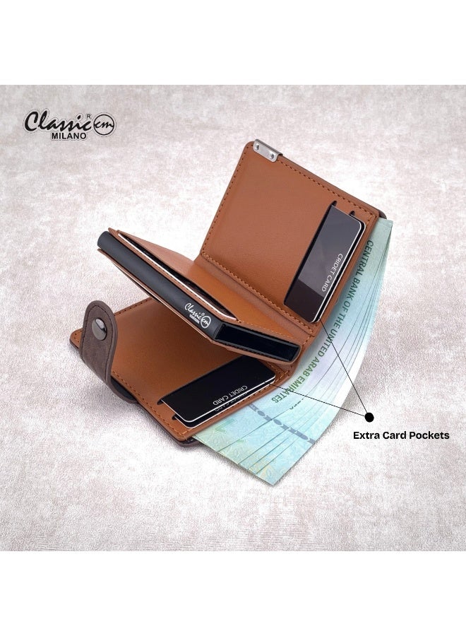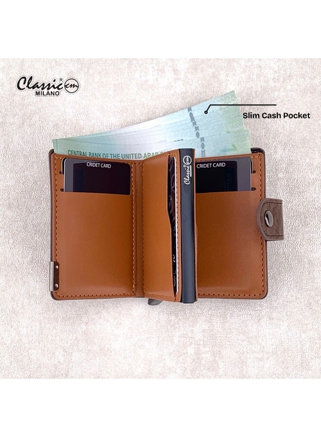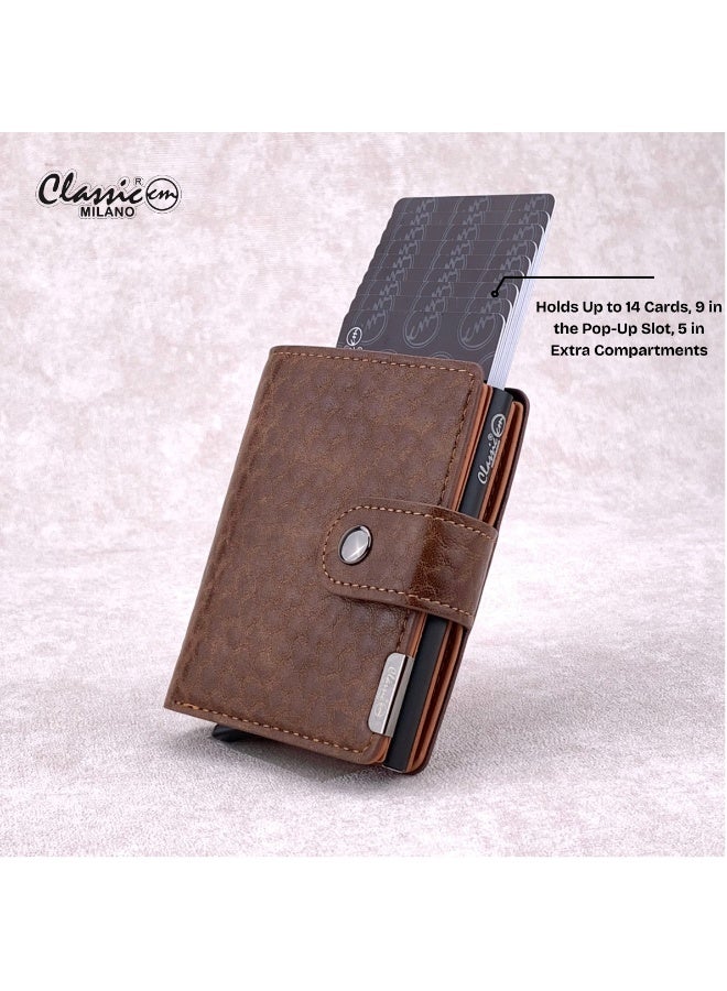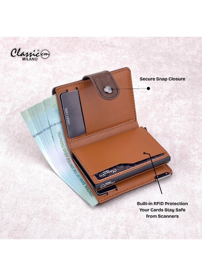 كلاسيك ميلانو محفظة كلاسيك ميلانو بحماية RFID للرجال والنساء – حامل بطاقات أوتوماتيكي بتصميم بوب أب – محفظة بطاقات آمنة ومدمجة للرجال – محفظة أنيقة للرجال والنساء