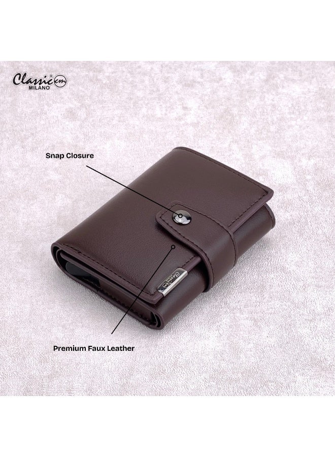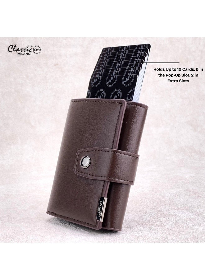 كلاسيك ميلانو محفظة كلاسيك ميلانو بحماية RFID للرجال والنساء - حامل بطاقات أوتوماتيكي بتصميم بوب أب - محفظة بطاقات آمنة ومدمجة للرجال - محفظة أنيقة للرجال والنساء