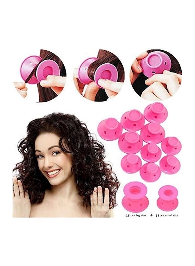 مجموعة بكرات لتصفيف الشعر مكونة من 30 قطعة وردي