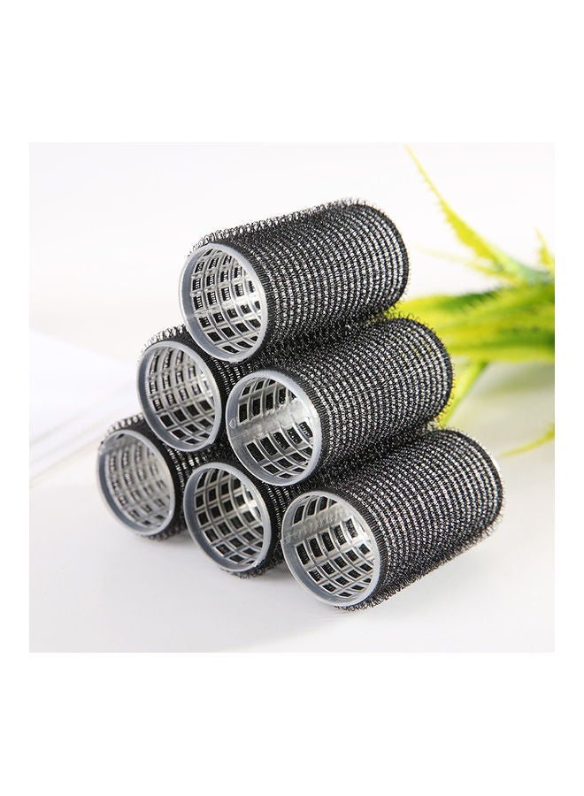 مجموعة بكرات لف شعر احترافية ذاتية الإغلاق من 6 قطع أسود