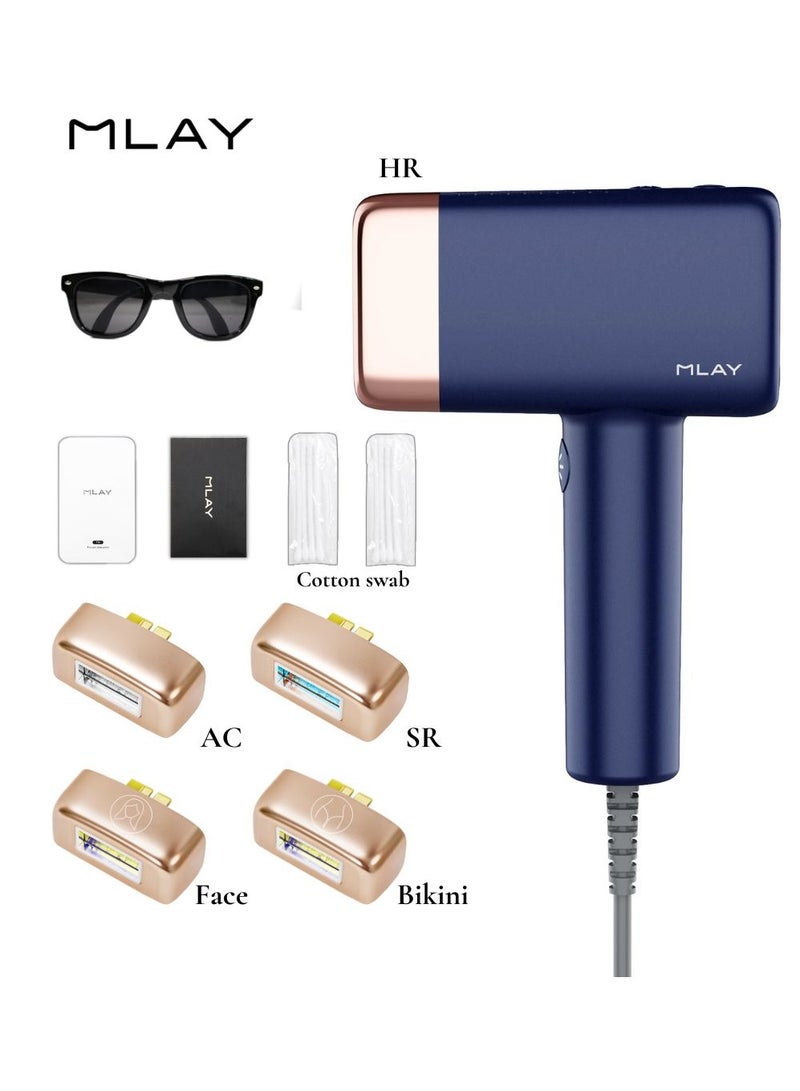ملاي جهاز إزالة الشعر IPL T14 5 في 1، إزالة الشعر بالليزر بتبريد 3℃، 500,000 ومضة 0.5 ثانية/ومضة جهاز إزالة الشعر بدون ألم لإزالة حب الشباب/تجديد البشرة لكامل الجسم بيكيني وجه ذراع إبط ظهر ساق