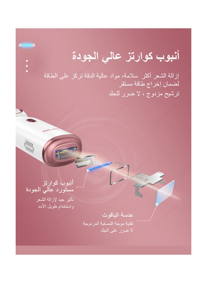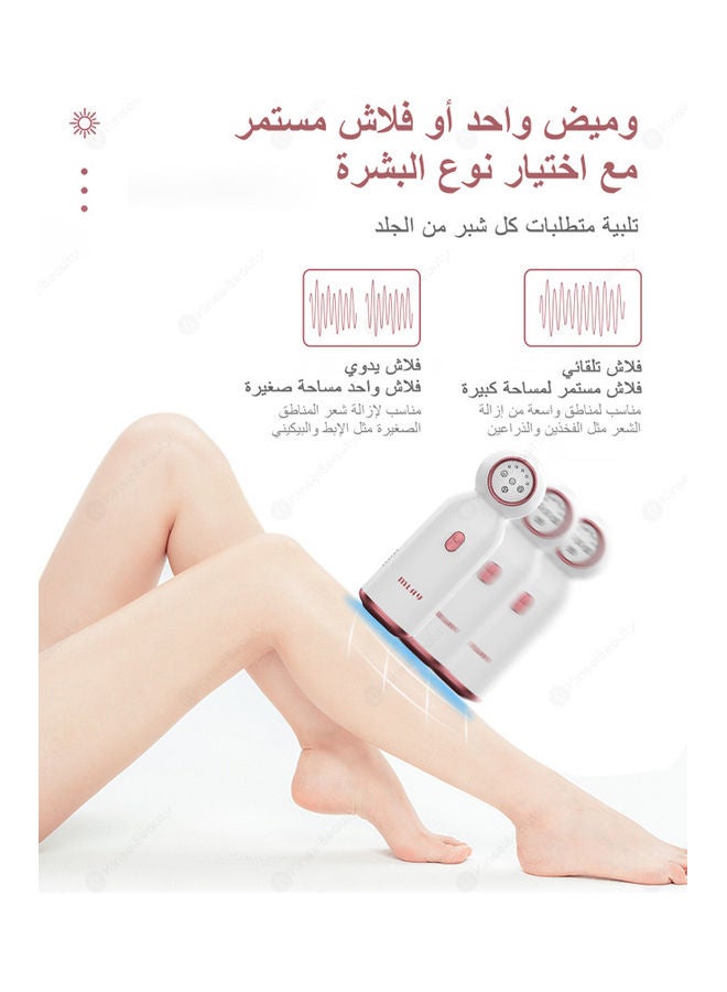 - يحتوي جهاز ملاي لإزالة الشعر على وضعين ومضات، وضعين تلقائي ويدوي، و5 مستويات مختلفة للطاقة للاختيار من بينها.