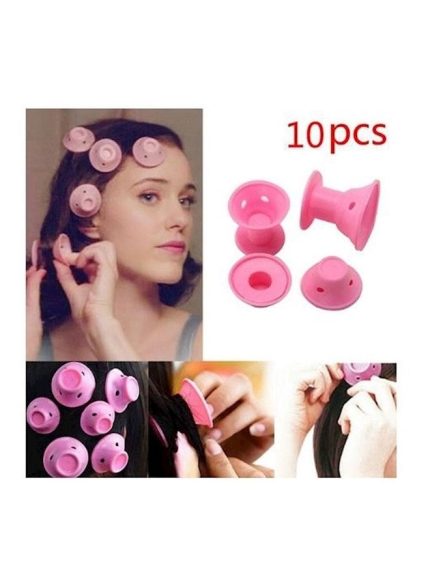 10 قطع من طقم لفات الشعر المرنة وردي 24سم