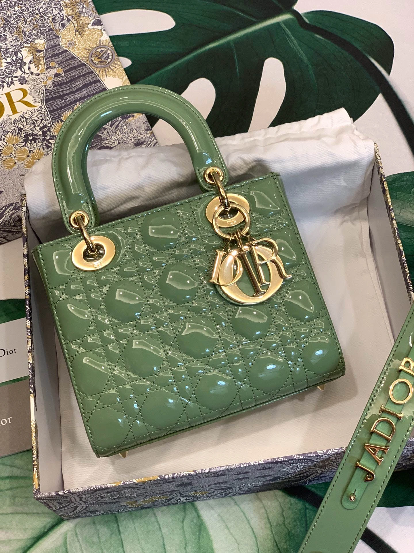 ABCDior Calf Patent Leather Rattan Check Handbag Size:20 x 16.5 x 8cm