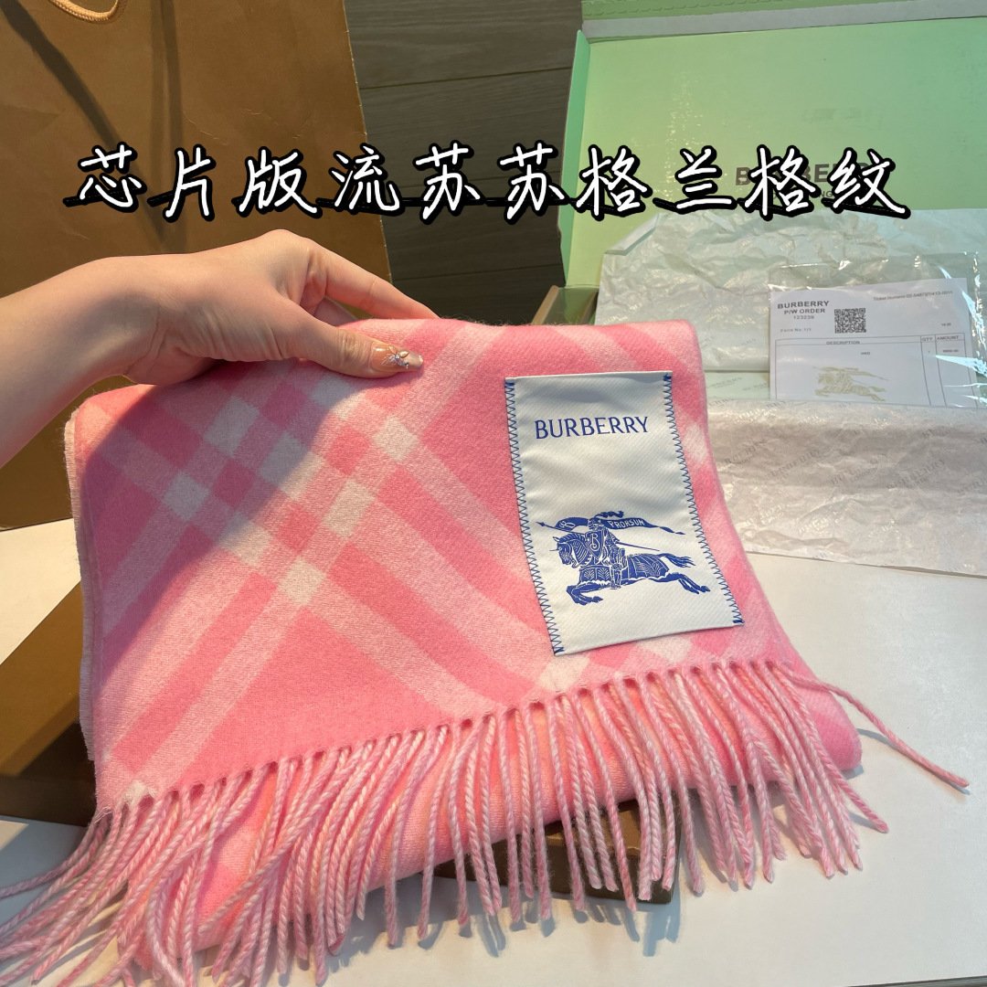 - A scarf in double-faced cashmere, jacquard-woven with a seasonal check at a Scottish mill founded in 1797. The fabric is washed in local spring water and receives an additional wash for an ultra-soft finish and raised nap.