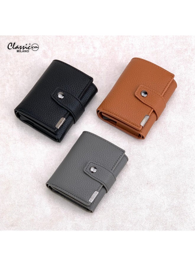 Classic Milano محفظة كلاسيك ميلانو من الجلد الصناعي مع تقنية حجب RFID للرجال والنساء – محفظة حامل بطاقات تلقائية بتصميم منبثق – حامل بطاقات ائتمان آمن ومضغوط للرجال – محفظة أنيقة للرجال ومحفظة بطاقات RFID للنساء