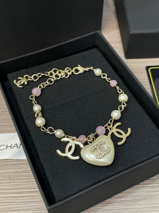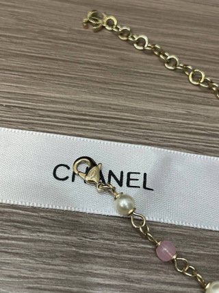 The design features heart-shaped Swarovski pearls as pendants, complemented by pink glass beads for added sophistication! The entire chain is made of original brass material, giving it a substantial and high-quality feel! Look for our authentic logo stamp details‼️ Every connection point is reinforced‼️ This piece truly embodies the Chanel aesthetic, exuding an intellectual, sophisticated, and elegant vibe. It looks beautiful with any outfit!