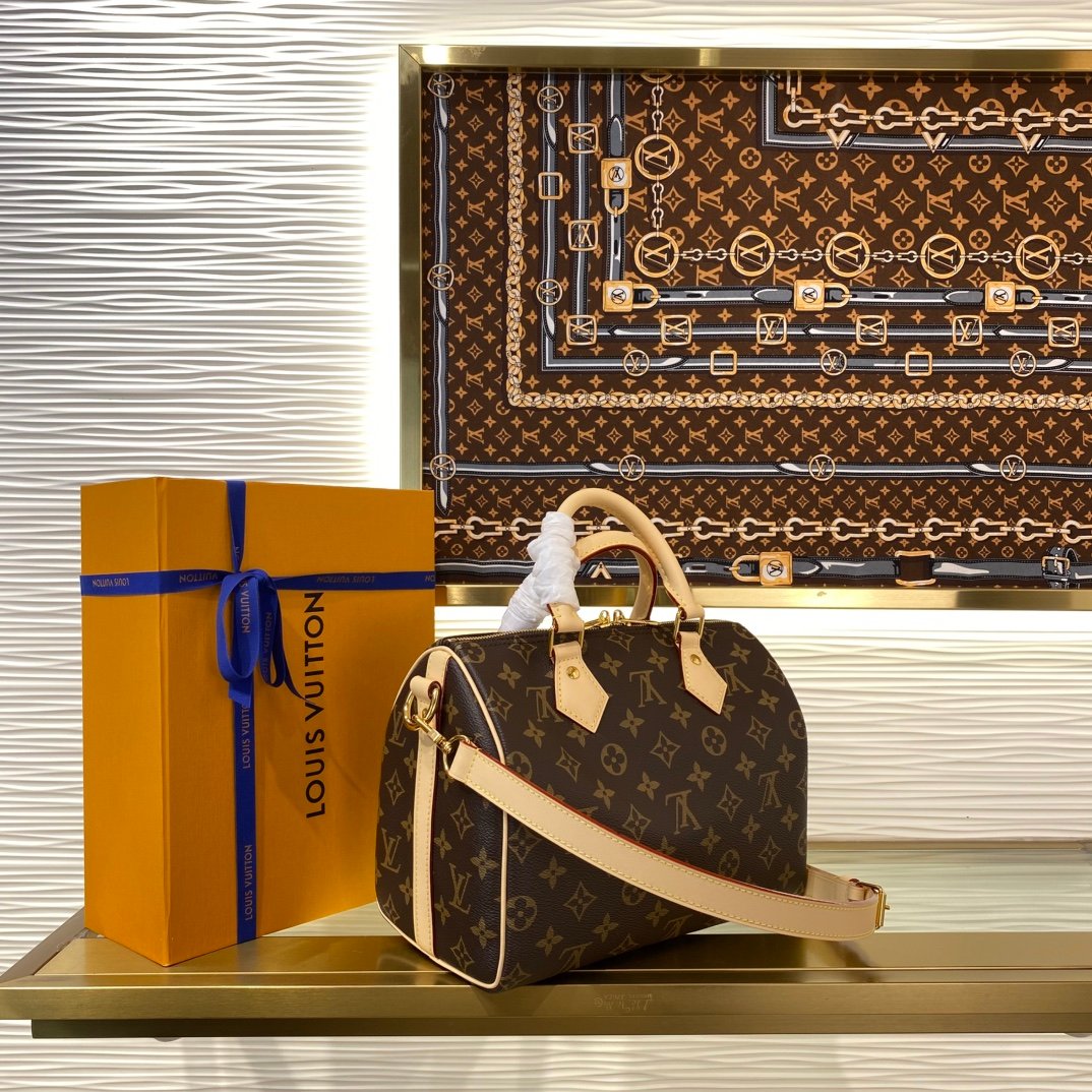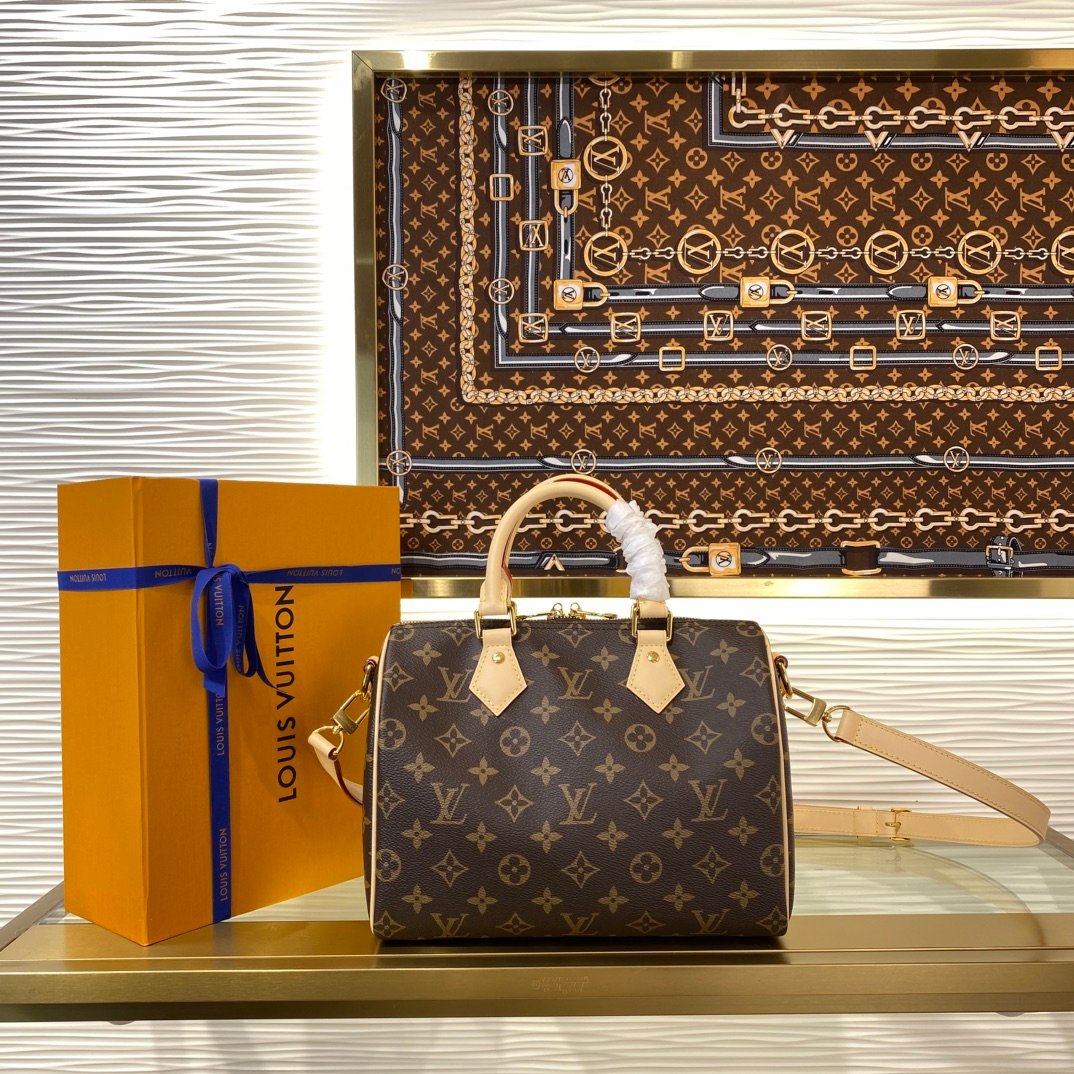 The Speedy Bandoulière 25 in signature Monogram canvas is an ideal city bag for every day. Originally created for travelers in the 1930s – the name refers to the era’s rapid transit – every feature of the Speedy’s design is iconic, from its unmistakable shape to the rolled leather handles, engraved padlock and detachable strap.