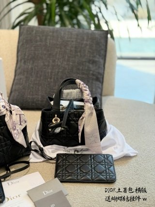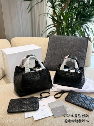 The Dior Toujours bag is distinguished by a casual and practical design. Crafted in black calfskin with Macrocannage topstitching, it showcases a spacious interior compartment with a matching pouch to organize the essentials. Its thin le…
