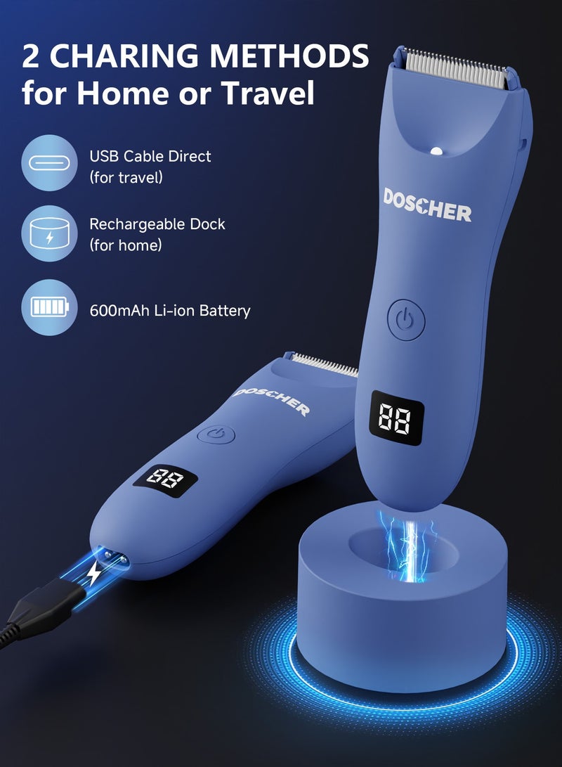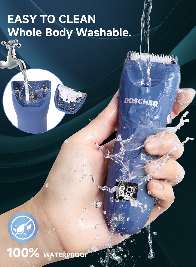 DOSCHER Electric Body Trimmer for Men, Waterproof Rechargeable Body Shaver, Safe Grooming Trimmer Wet/Dry Use, Men’s Grooming