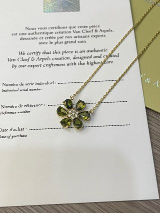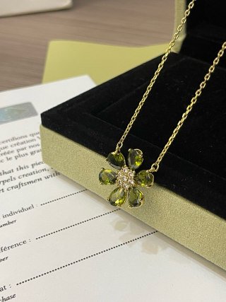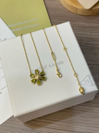 Fleurs d’Hawaï pendant, medium model, 18K yellow gold, peridots, round diamonds; diamond quality DEF, IF to VVS. REFERENCE VCARPHK300 STONE STONEDiamond: 7 stones, 0.19 carat STONEPeridot: 6 stones, 7.5 carats CLASP Hallmark clasp, small…