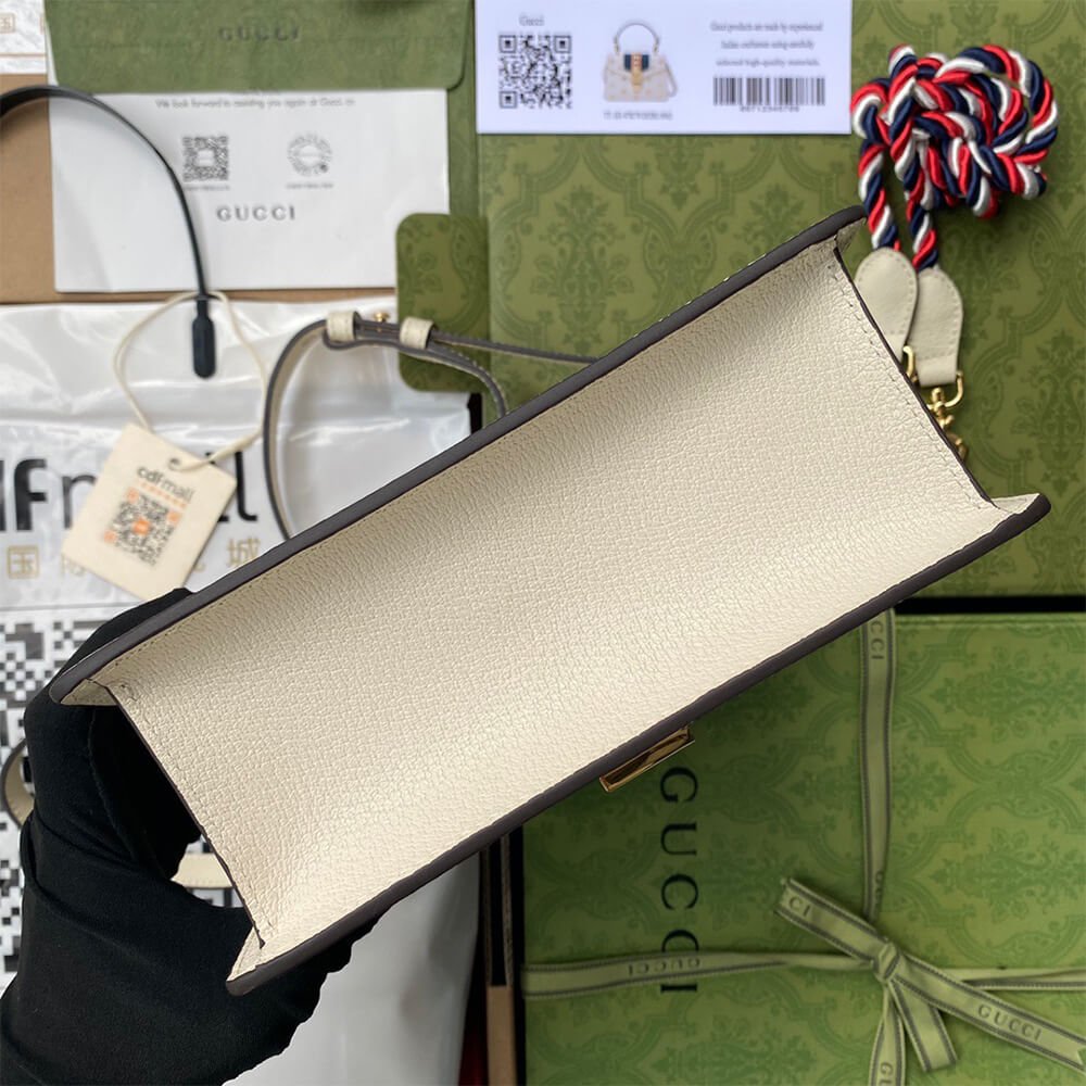 Super high-quality 1:1 copy replica bag Style: 470270 Mini size: 20cm x 14cm x 8cm White metal-free tanned leather with gold bees and stars print Shiny gold-toned hardware Viscose lining Nylon Web detail with metal chain and buckle closu…
