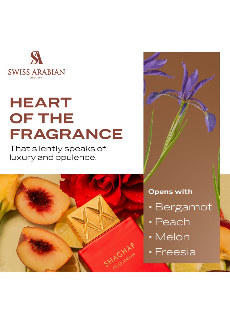 - A LUXURIOUS FRUITY FLORAL EXPERIENCE: Shaghaf Oud Ahmar is a fruity, floral, amber Swiss Arabian perfume that exudes luxury and opulence, leaving a long-lasting impression wherever you go