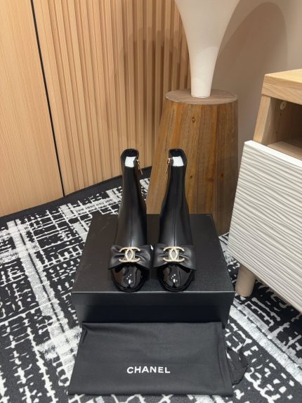 24Fw new Chanel bow double C diamond buckle short boots